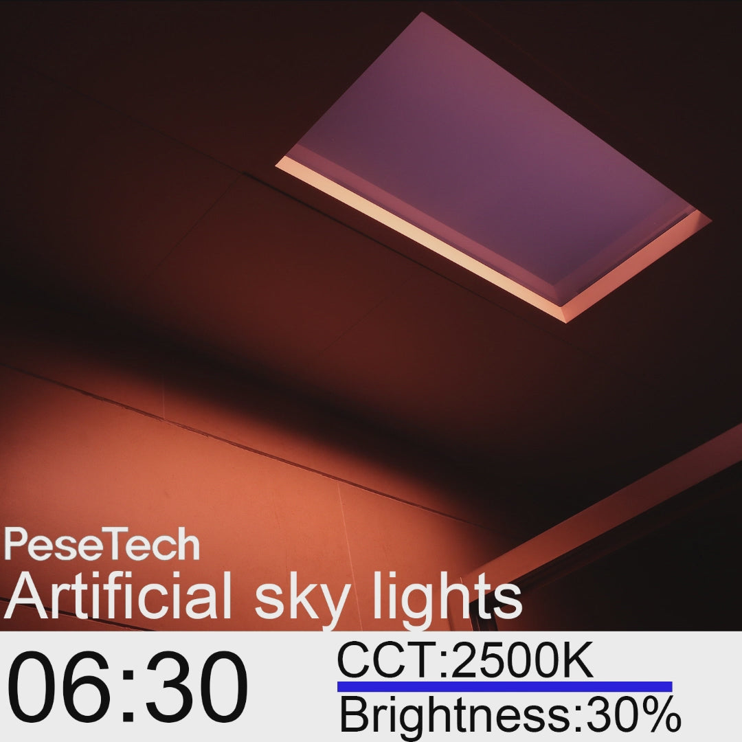 In modern society, people spend 90% of their time indoors, but in many cases, indoor lighting is not enough. People stay in a closed room for a long time, which will cause adverse effects on people’s body and mind, such as biological clock disturbance and depression. Pesetech introduces a new generation of intelligent artificial skylights that simulate a realistic blue sky that looks like a real skylight with infinite depth. The ultra-wide 1800K-10000K color temperature can also simulate sunrise and sunset, simulate all-day changes in sky color temperature (HCL lighting), enhance your circadian rhythm, and enhance your cognitive skills and well-being.